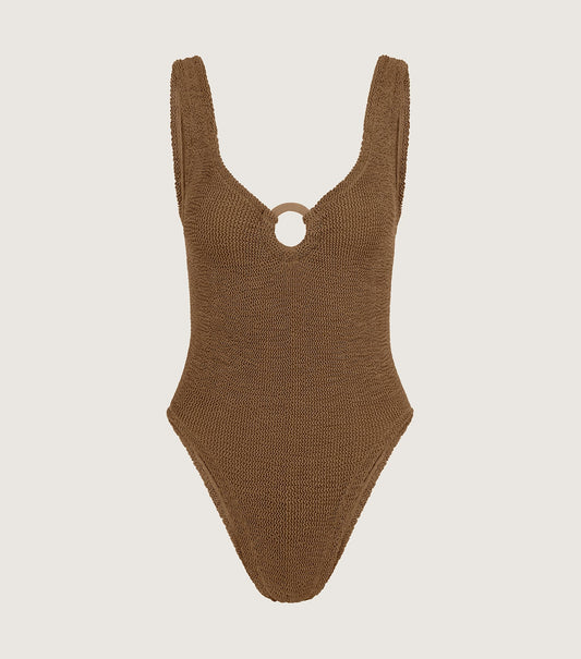 Hunza G Camille Swim, Metallic Khaki Crinkle