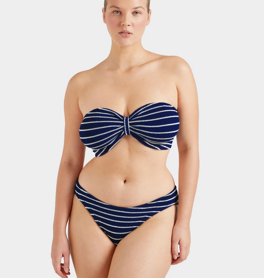 Hunza G Crinkle Bikini, Jean Bikini Navy/White Stripe