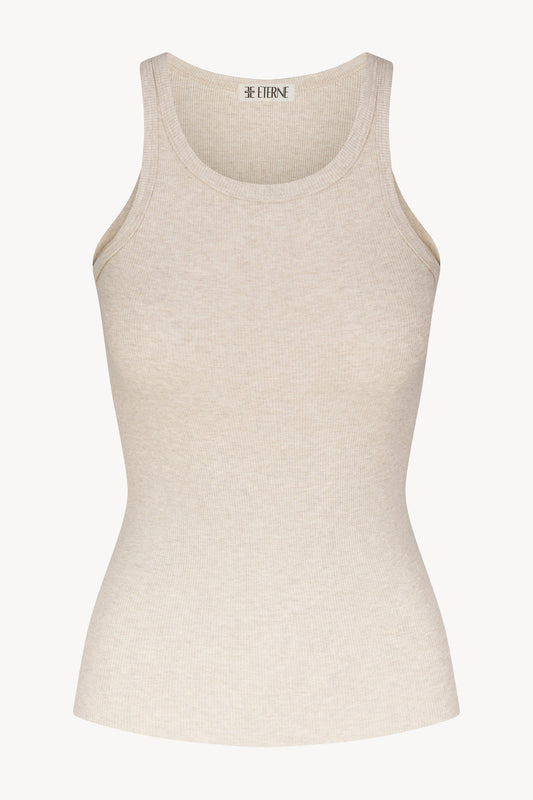 Éterne High Neck Fitted Tank, Heather Oatmeal