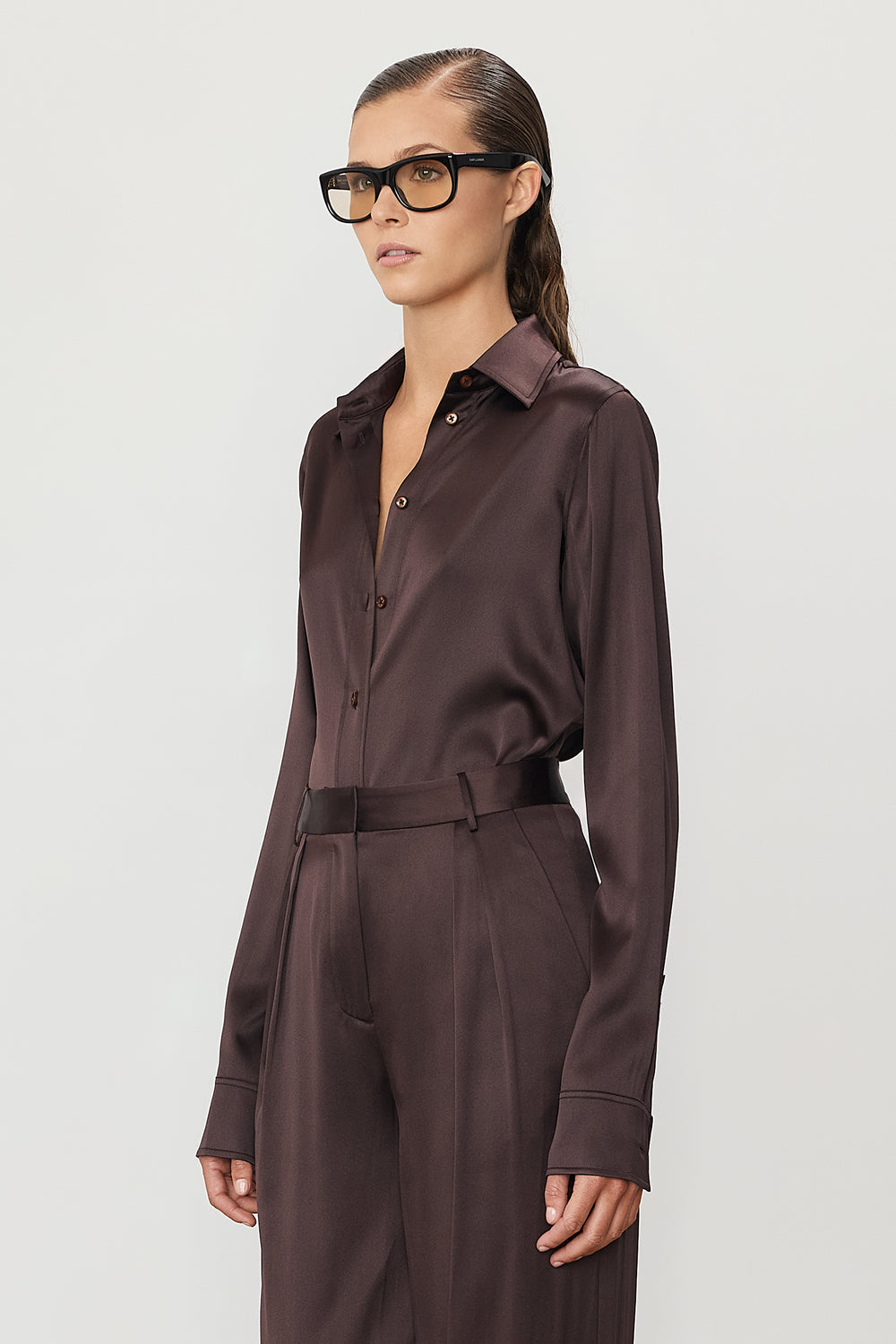 ÉTERNE's Constance Top is crafted from a luxe silk, offering a tailored fit and classic feel—a versatile essential for day to night.