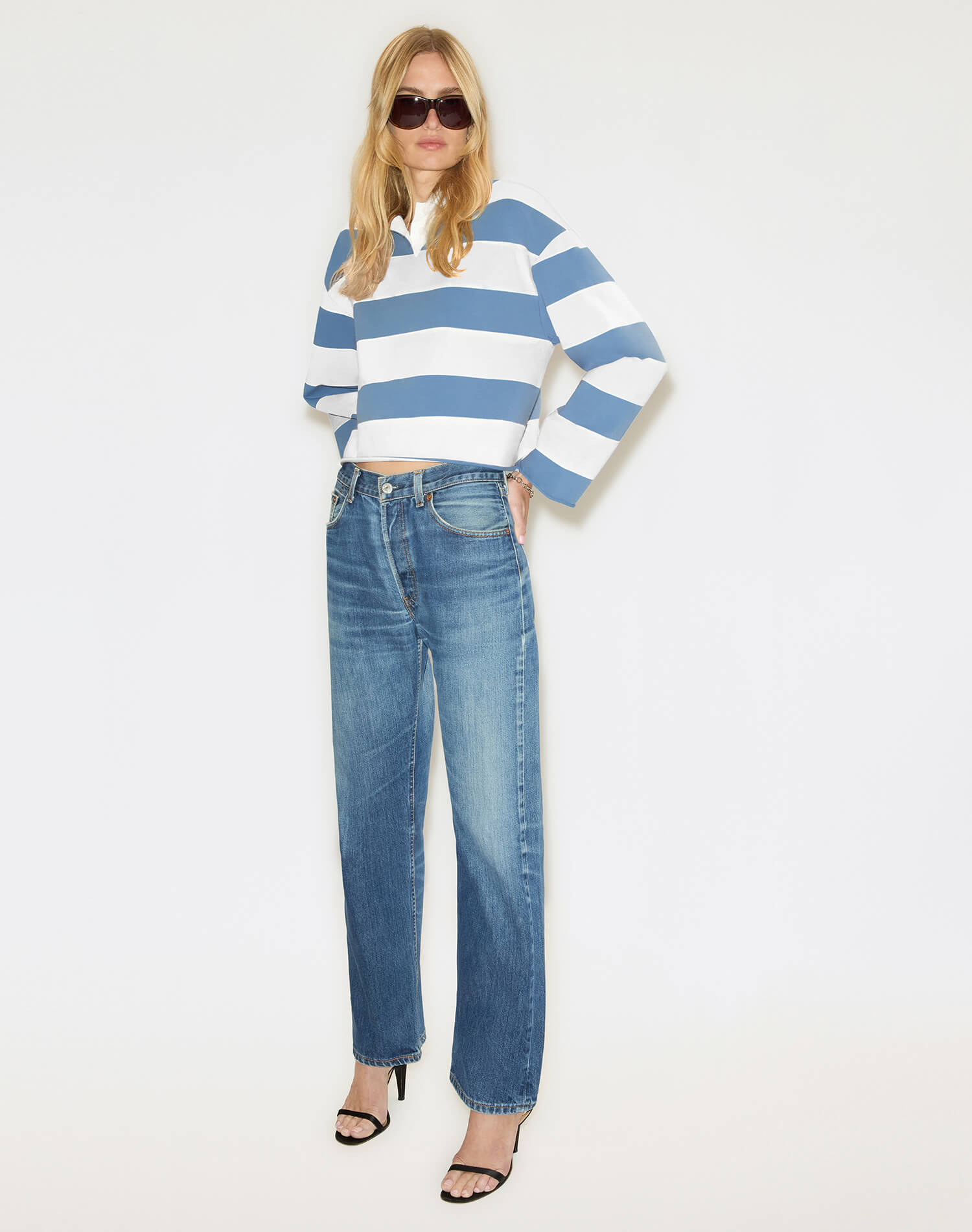 RE/DONE Cut Off Rugby Polo, Blue & Ivory